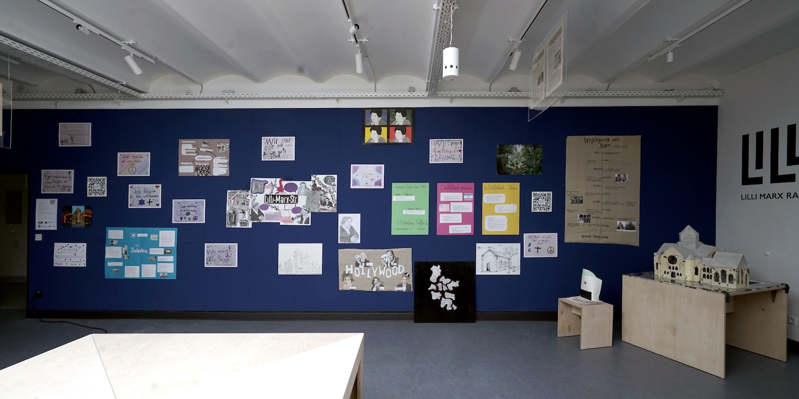 Ausstellungsexponate im Lilli-Marx-Raum von Schülerinnen und Schülern des Annette-von-Droste-Hülshoff-Gymnasiums: