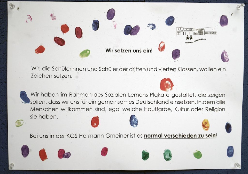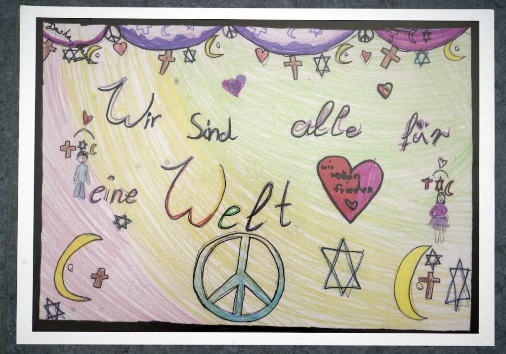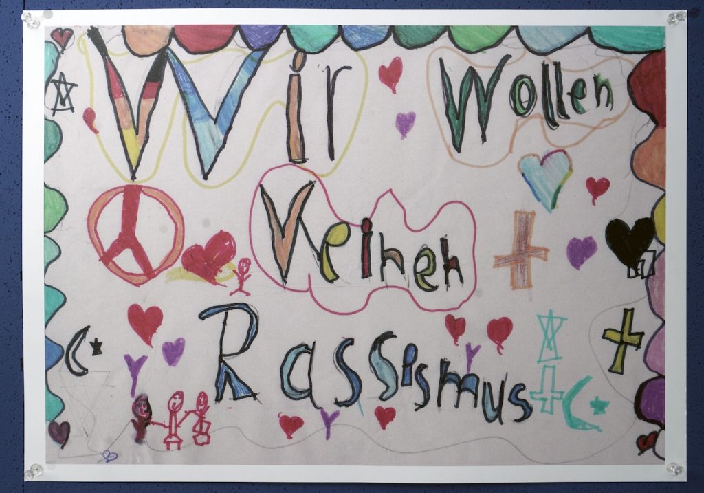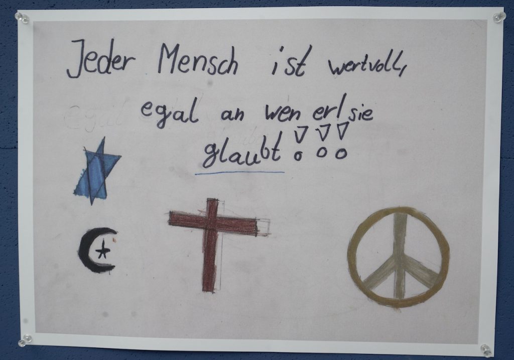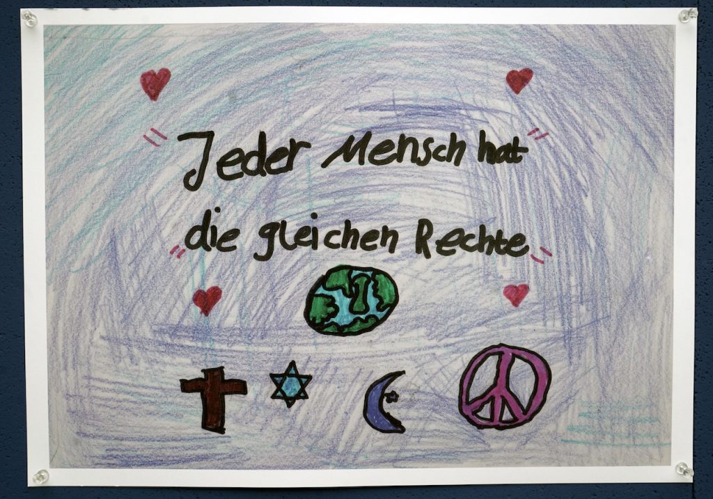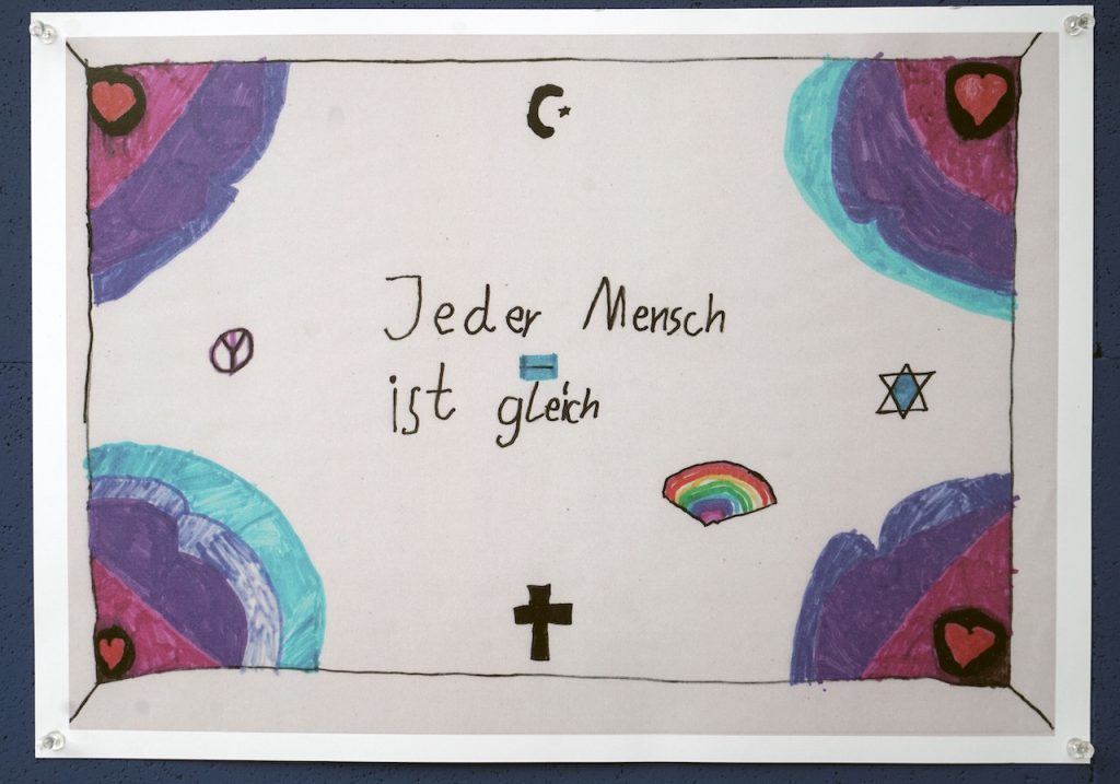 Zudem gibt es Plakate von Schülerinnen und Schülern der KGS Hermann-Gmeiner-Schule Düsseldorf zu sehen.