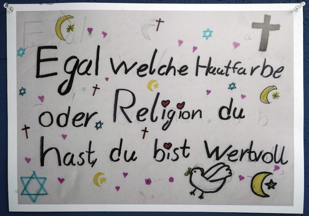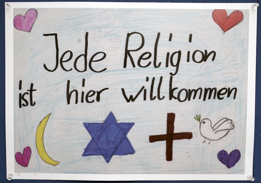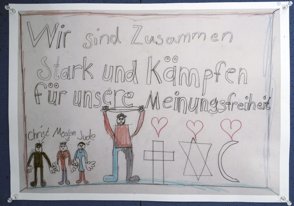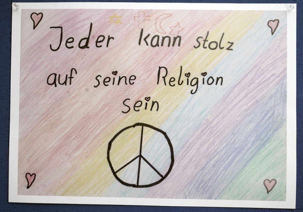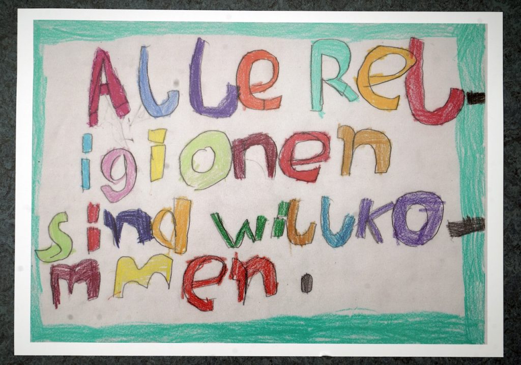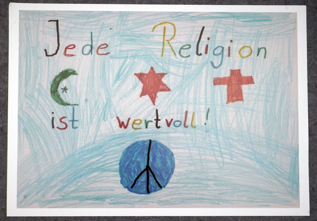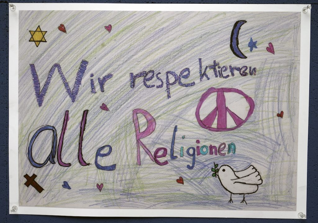 Zudem gibt es Plakate von Schülerinnen und Schülern der KGS Hermann-Gmeiner-Schule Düsseldorf zu sehen.
