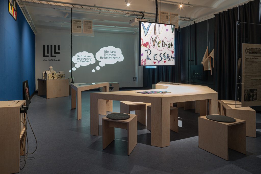 Zum einen soll schulischen Besuchergruppen aus Düsseldorf und ggf. auch darüber hinaus regelmäßig Gelegenheit gegeben werden, die Ausstellung zu besuchen und deren Inhalte interaktiv zu erkunden. Das bedeutet, dass die Ausstellungsinhalte u.a. in einer Weise präsentiert werden, die – neben einer Führung durch die Ausstellung – auch individuelle Zugänge zu den Inhalten ermöglicht, z.B. durch einzelne Aufrufe von Filmsequenzen oder Podcasts, Selbsterkundungen von Büchern, Zeitungen sowie weiteren bereitgestellten Informationsmaterialien, Besuch einer Ausstellungs-Website und der dort eingestellten Inhalte sowie Schreiben von eigenen Kommentaren und Stellungnahmen zur Ausstellung bzw. zu deren Inhalten und Themen etc.